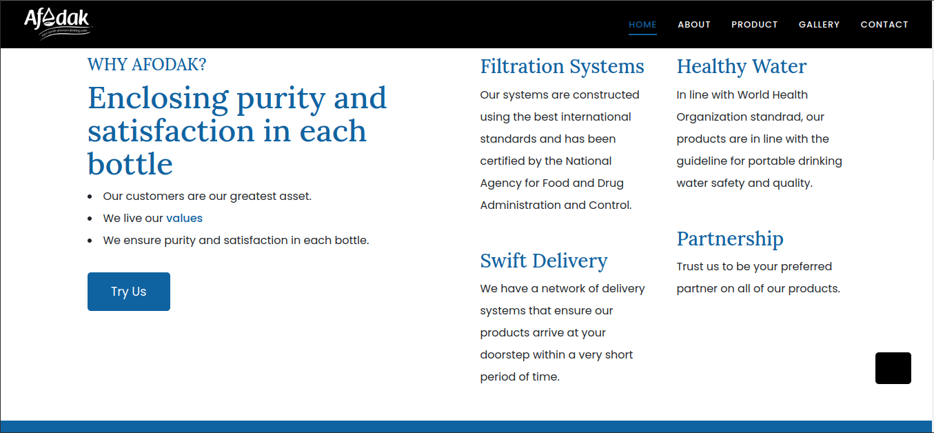 Website for a water company. Tools used in building this inculde HTML, CSS, JS and Bootstrap.
